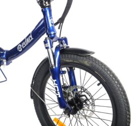 Our Robin+ folding e-bike has a unique frame - stretched and with integrated carrier. It rides very stable for its small size and can be also taken on all rail trails. Thick MTB style tires, a solid and quality front suspension, paired with a powerful motor makes it a pleasure to ride this bike.