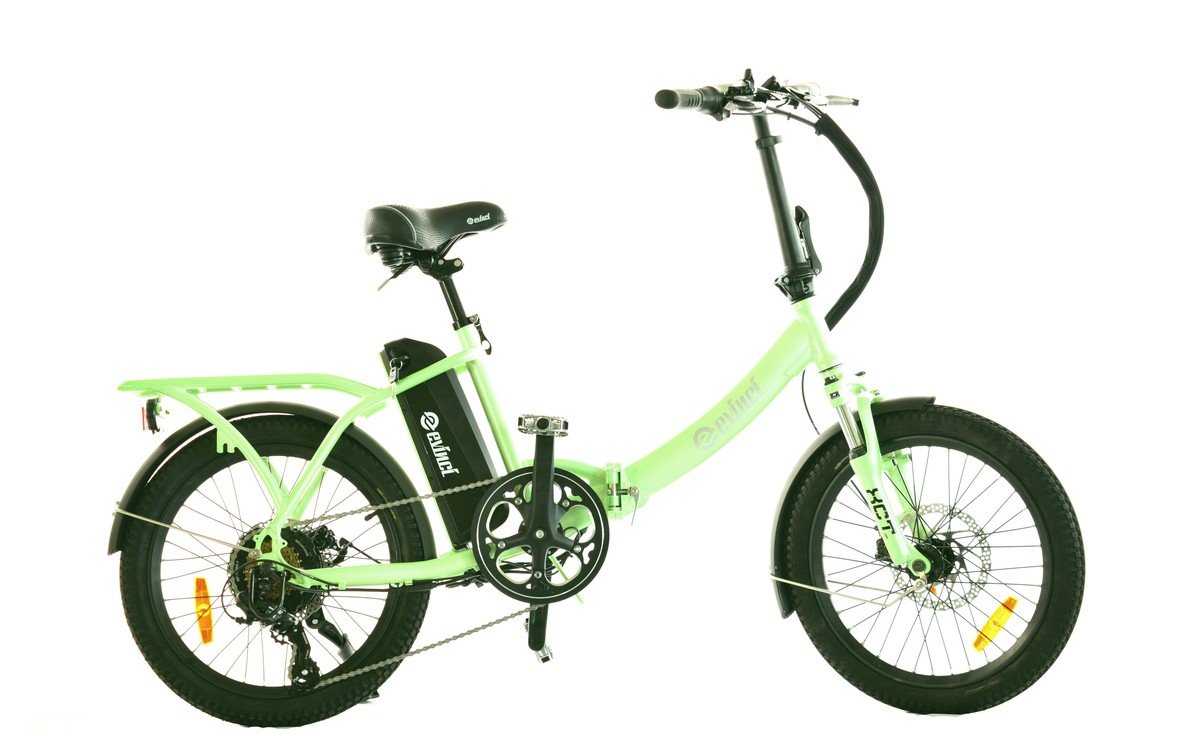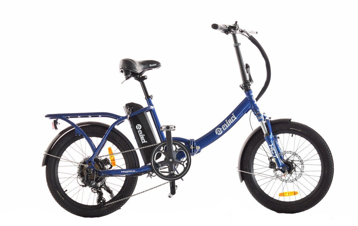 Our Robin folding e-bike has a unique frame - stretched and with integrated carrier. It rides very stable and can be also taken on all rail trails. Thick MTB style tires, a solid and quality front suspension, paired with a powerful motor makes it a pleasure to ride this bike.